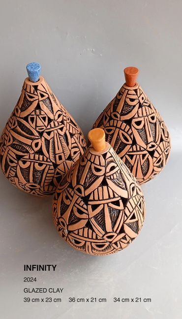 Djakou Kassi Nathalie is a Cameroonian ceramicist born in 1975 and is now living in Lagos. Inspired by art since her childhood, it's no surprise Djakou started studio practice in 1998 after six years of study. The same year, she became an instructor in the only art school (Intitut de Formation Artistique) in Central Africa at Mbalmayo, Cameroon. There, she successfully introduced the "Material Technology" course into the school's curriculum.